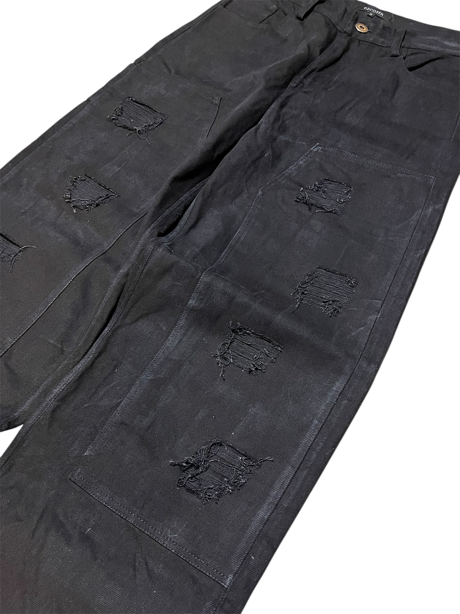 Made from heavyweight 13.5 oz denim, these jeans come in two colorways and feature a hand-washed finish. Every rip and is done by hand, giving each pair a worn out look.